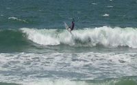 Watch the current on bigger swells (head high +) As its very easy to end up 1000 yards down the beach in 10 minutes. Riptides and undertoes galore... sandy bottom is deep for the first 20 yards out, then sandbar comes up. Mushy take-offs turn into gaping barrels if you can connect the sections and make it to the inside.