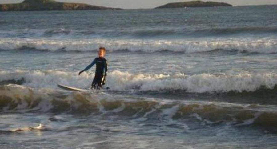 the beach is behind a couple of pubs and houses in the village of aberdaron.(which is sign posted in abersoch)