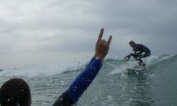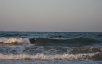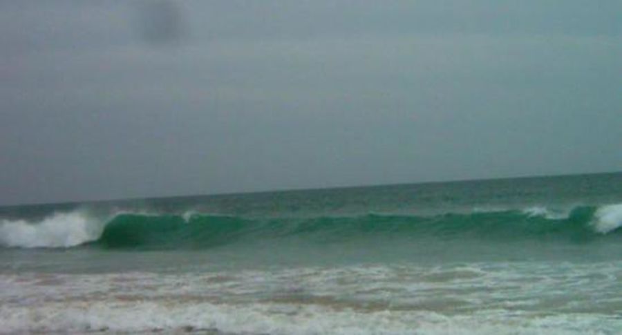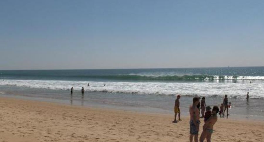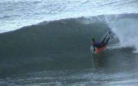 more powerful than it looks even when small, breaks in shallow water over sand, strong cross shore rip inside