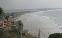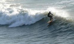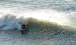 Don't mess up on the right hand side of the beach cause you'll break your feet off the rocks at the bottom. Also beware of the rip-current. This spot preforms best about 2-3 days after a heavy storm and while there is still a little bit of low pressure around. A slight offshore breeze (anything from the north) helps to peak up the waves.