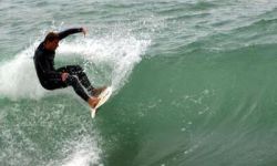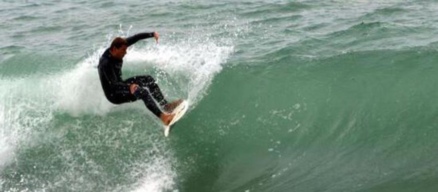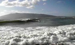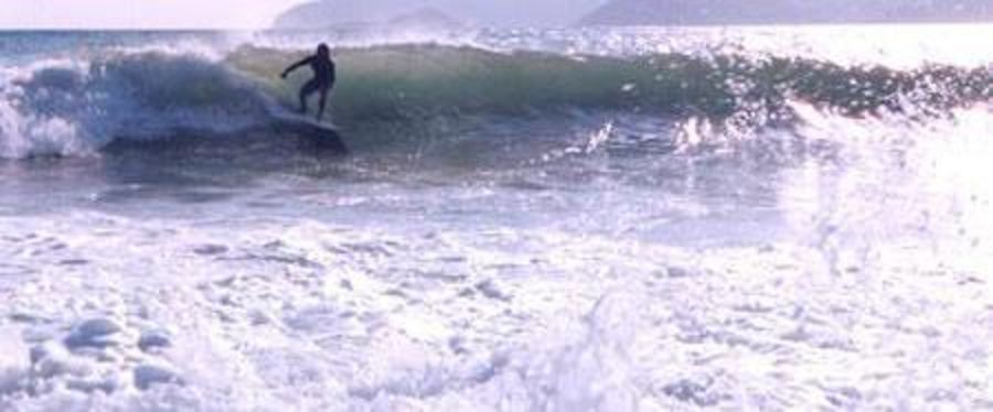 This spot when it breaks produces a nice left wave, on it's right there's also a big sandy beach full of beginners.