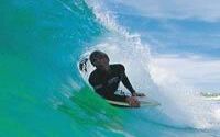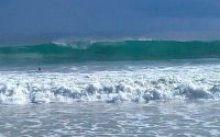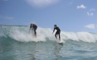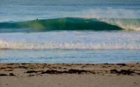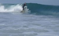 only really starts to work on a big swell, has some intersting sections, including a sucky take off and a fast barrel section, but soon fades out into a deep channel, sometimes on a really big swell you can make it into the inside section on the beach for an extra long ride!!if you get rolled you usually end up in the channel soon enough so is pretty safe in this respect.