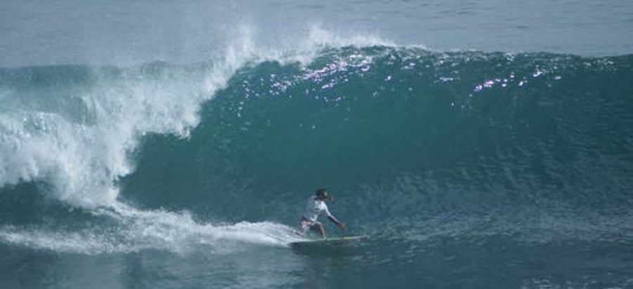 Long world class barreling wave. It's a perfect left. It requires the exactly opposite wind conditions of Bawa. If Bawa is blown out come here.