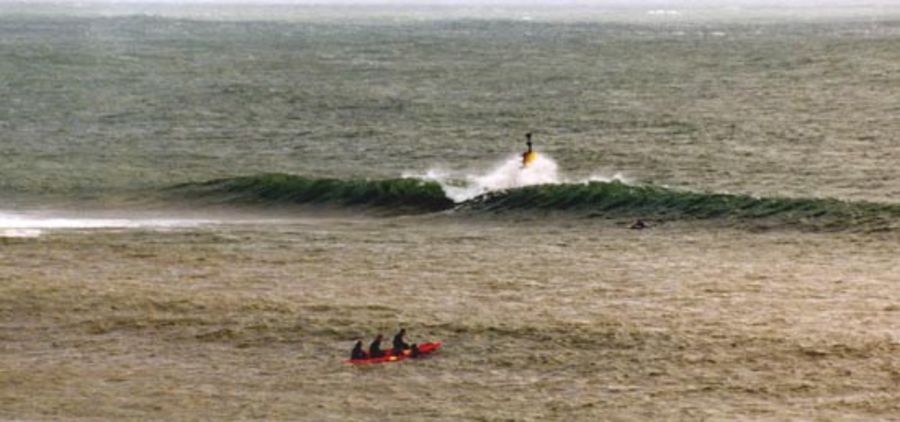 The spot is at the first beach north after the harbour of Audierne. It's about 300 meters from the shore just at the beacon. This beacon is built on the reef.