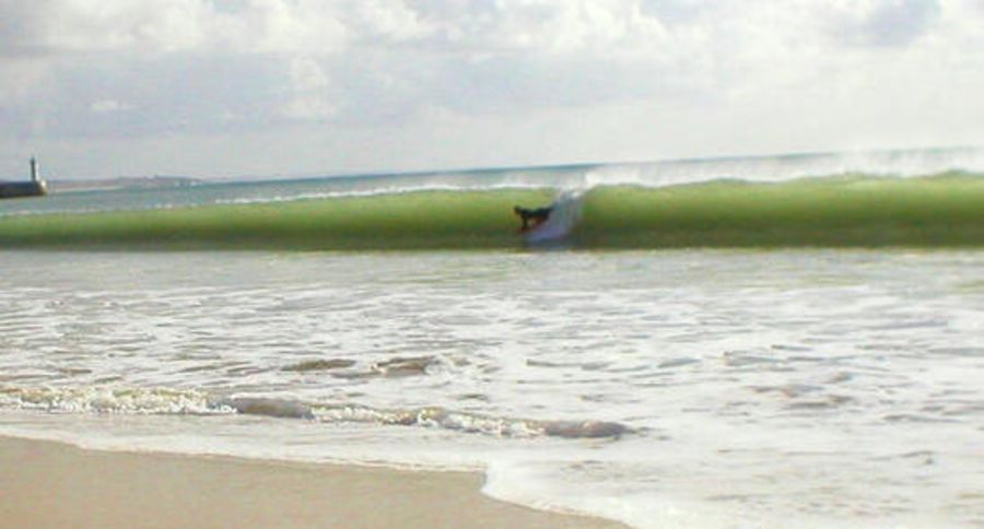 This very good spot is a sheltered one. It works by a big swell. When all the spots around are closing out, come here. It holds big waves. 2 waves on the reef. The take off is either on the right of the beacon or the left. The right is hollower than the left and shorter. The left is faster and longer than the right. Attention: at low tide, the left sucks on the reef and sometimes cannot be surfed. Because it's often the last spot that works by a large swell, it's a crowded spot. No problem, locals are friendly is you keep a low profile. Bodyboarders may find a good shore break at the beach.