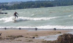 This is the first spot ever surfed on the Lake Leman, first session occured on August 1995, and others in 2001 and 2007. It works only with very strong north wind conditions. Mostly in winter and rarely on fall or spring. You can ride small 1 m waves, left or right.