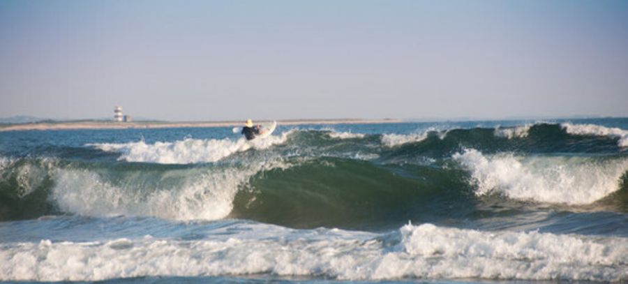 go to horseneck beach and right behind it next to the jetty there is a private beach facing west. just walk over to it and tell the rent-a-cops that your not surfin on public property.
