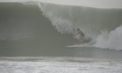 In a 2 wheel drive you can drive on back top until about 200 metres from the point. In a 4x4 you can drive right up on to the point. The wave works from Late-June until early-September which coincides with the Khareef. he wave handle the cross Khareef wind well. However large swell and strong winds produce a rip that will carry you from the peak and deposit you right down the beach in a matter of minutes. Luckily the rip runs pretty much parallel with the beach. To counter the rip either use a bigger board that is easier to paddle, surf earlier in the morning or late afternoon. Mid-August to early-September often sees moderate swells and moderate winds which result in fun waves.