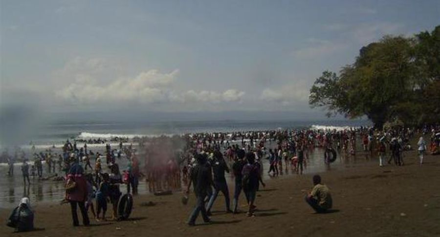 Get to Pangandaran, from there by local transport to cijulang. Rest of the trip you have to go by motor bike, ask your driver to take you to Batu Karas and make sure he'll go over the bamboo bridge otherwise it will be a long trip!