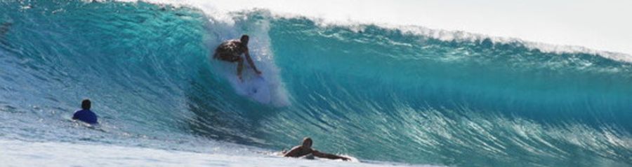 A great bay with 3 waves that break in 3 different directions, and suit all ability levels from kook to barrel charger! Some boats occasional visit the bay and there is one land camp, Banyak Island Lodge. Scored awesome waves here with only one boat and a few guys from the land camp. Gunturs!!! What a hollow wave...deep tubes!