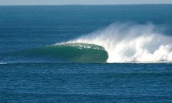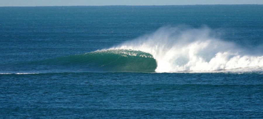 An incredible, wrapping, horseshoeing, power packed, free fall drop into a spitting tube. The power of the wave can be seen from the side as it explodes in about four to six feet of water - enough to shield you from being crunched too badly....the paddle puts most people off (and the local grey nurse sharks). Take a 7ft pintail at least. Needs to be oil slick clean as well or you bounce off the ledges.....