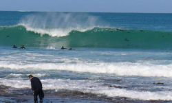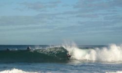 it's a classic narly wave with a shallow take of and a hollow right hander. The break is known to hurt people.