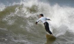 If you get lucky, you can pick up some very fun rides like the one of the photo, and if you´re Very Lucky, you may even surf it without a wetsuit!!