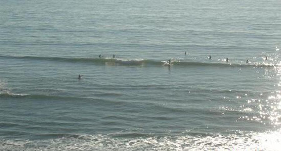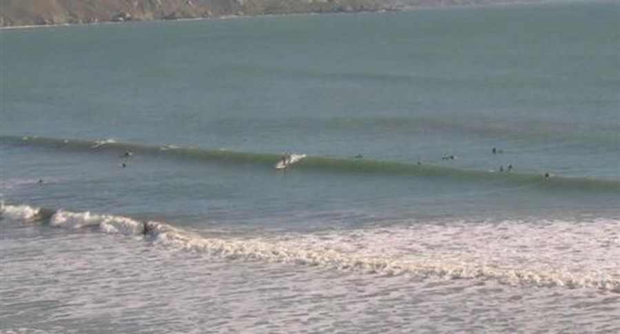 It does indeed break "regularly" in Bolinas, but most of those days might be considered "barely rideable," tiny, mushy, semi-blown. Every few months there will be a couple of days straight with "fun" waves (perhaps shoulder-head high) for a couple hours each day, and once every couple of years there are days with "amazing" waves.