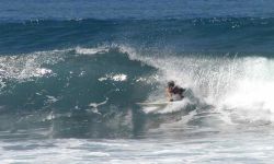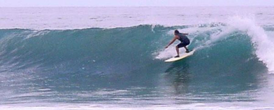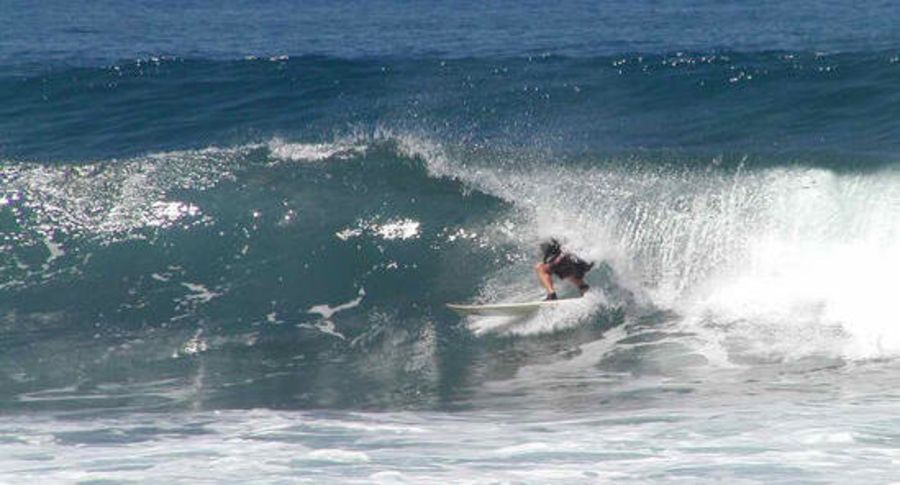 a wide bay with rocky reef breaks at both ends. on the eastern end is a righthander, giving long rides, best at mid tide. the wave on the western side of the bay may be shorter but can be fun due to the radical take off