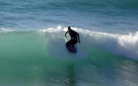 Drive to Burgau parking directly above the beach. The best peak is on the right handside of the beach next to the cliff.