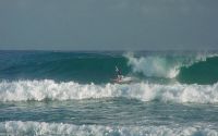the sand bar is quite close to the beach... so it's a sharpe bottom turn and punp to get the speed, but my advise take a mini-mal if your not to good....have fun. oh and take your sun cream...