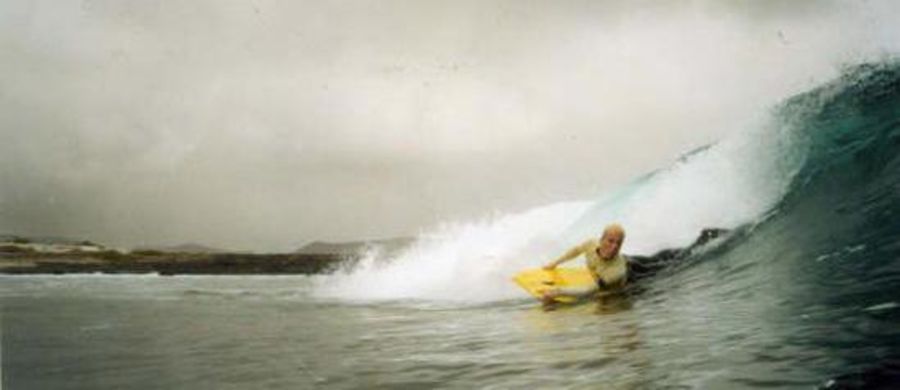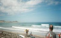 Follow the coastal track west + north from the village of Famara. Make your way over sharp lava.