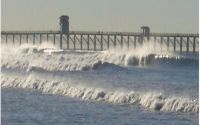 Now listen carefully. Do not surf here on a foggy day, because amphibious watercraft often come out of nowhere and on to the beach. Those machines are huge and will squash you. The officers will be ticked if they see you there. Also, don't be under the freeway bridge if a tank comes by. It could very easily break your eardrums. Don't be seen if possible. Usually, if caught you will be told to leave, but they actually can arrest you. I was caught twice. Once they made me leave, the other time they borrowed my board and surfed (some Marines are surfers too).
