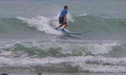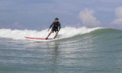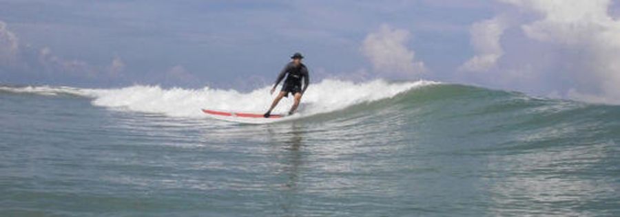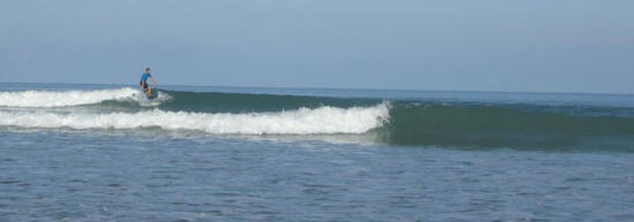 It's further than you think to paddle out to the right and the left requires a 20 minute hike over broken dead coral and a rock hop out to the break so wearing a pair of booties is adviseable. The beach to the south has decent waves around the rivermouth.