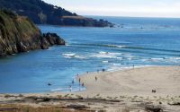 Water is feaking Cold! Just a melow little beach break that is in a protected Cove, good for all to have a fun time. You can stand on the bottom at the break on smaller days. Not much of a rip so safe place in Mendo to learn.