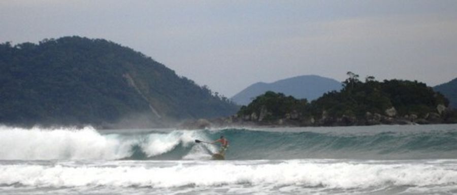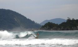 Take a Offroad vehicle from the city. There are many tour guides who will take you there. Or you can take a boat around the island Ilhabela to the otherside.