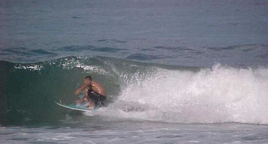 The waves break trough all the bay depending on the swell direction, When it is an E or ENE swell the left corner breaks the best lefts, but when a big SE or ESE comes around, the rights next to the small island fires trough the bay.