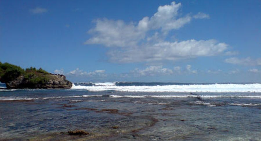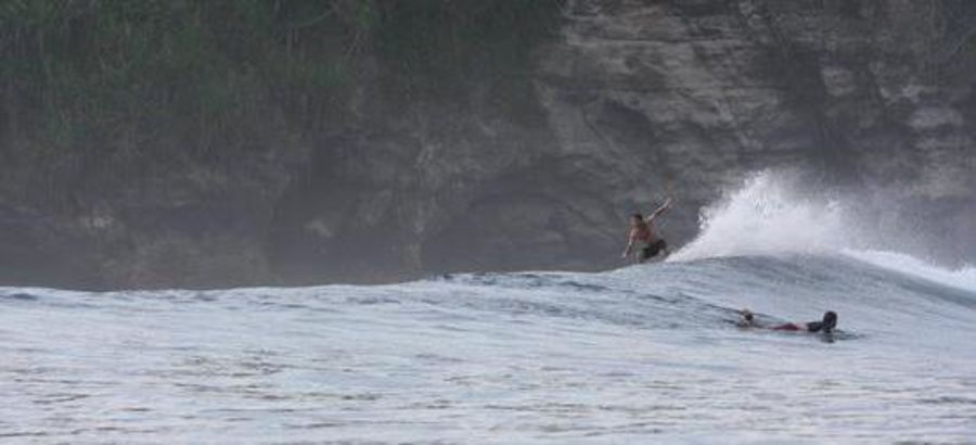 This wave breaks out of VERY deep water, it's always bigger than any of the other spots on Lembongen and is worth checking if nowhere else is breaking. Watch out for sharks though - there's a breeding ground somewhere near. Locals will warn you (or refuse to take you out) if the shark problem is bad. Very powerful wave and it's eerie surfing it cos you're between 2 islands, with the waves, as I've already said, coming out of VERY deep water. Take care when surfing!!