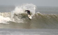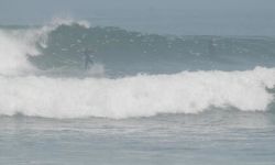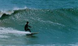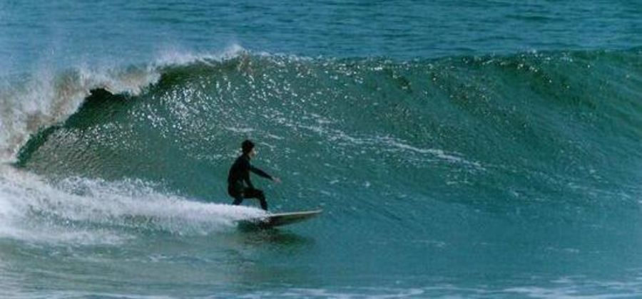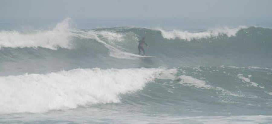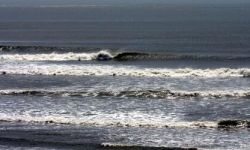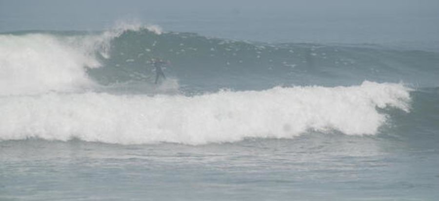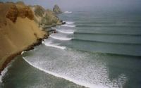 The wave begins far from the town, some 2 kilometers out to the cape. The wave breaks along the cape and tends to hit its first reforming section at the point. The point is a large rock outcropping, where the wave tends to close-out as it arrives from the cape, but experienced surfers can often make the long barelling section in front of the point and begin the longest ride of their lives towards the pier. Taking off from the point, the ride takes you flying past the sand dunes and the hotels, arriving at the section known as El Hombre, which peels right in front of the infamous El Hombre motel/hostal. When the section from the point connects with the El Hombre section, you can ride the wave all the way into the town, right up to the pier! Most people don't have the legs to keep up with this fast rifeling wave for that entire distance.