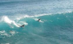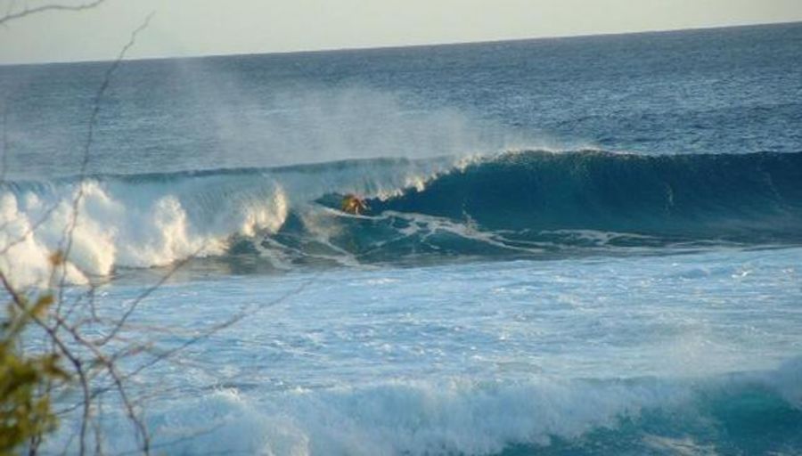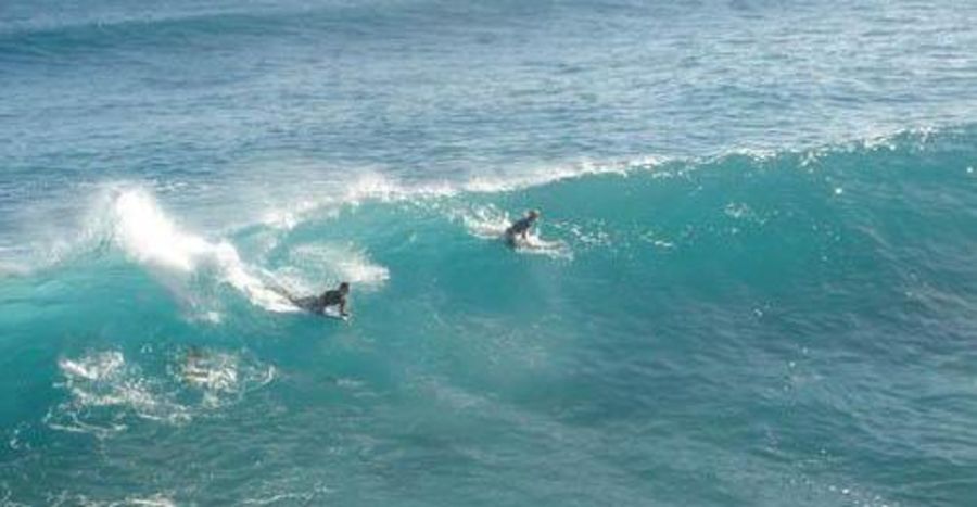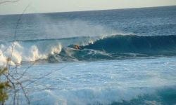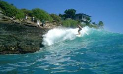 because of the situation of the waves breaking left off the rocks you must sort of wait in line to get waves. haoleville, but respect locals there.