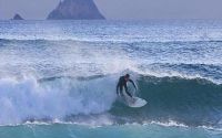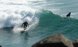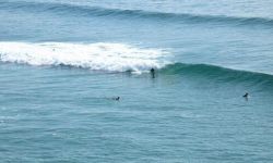Beware bathers in summmer. Strong currents. Deceptively strong waves. Difficult to predict break, stick to one spot left or right (depending on preference) and wait for peak. Fast up needed, can be dumpy. really powerful waves that tube whith a nice off shore wind a real strong ledgy wave. one of my favourite spots that offers both right and left breaks depending on what wind is there