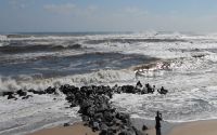 Half mile s.of atlantic ave. meter parking or east side of the road. Look for the red flags this is the surfing area no swim zone.