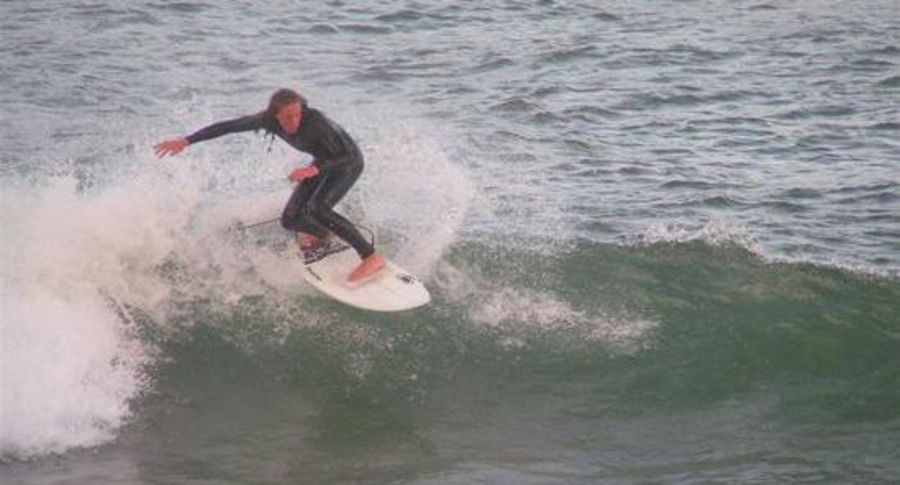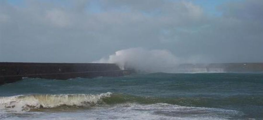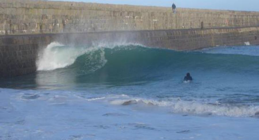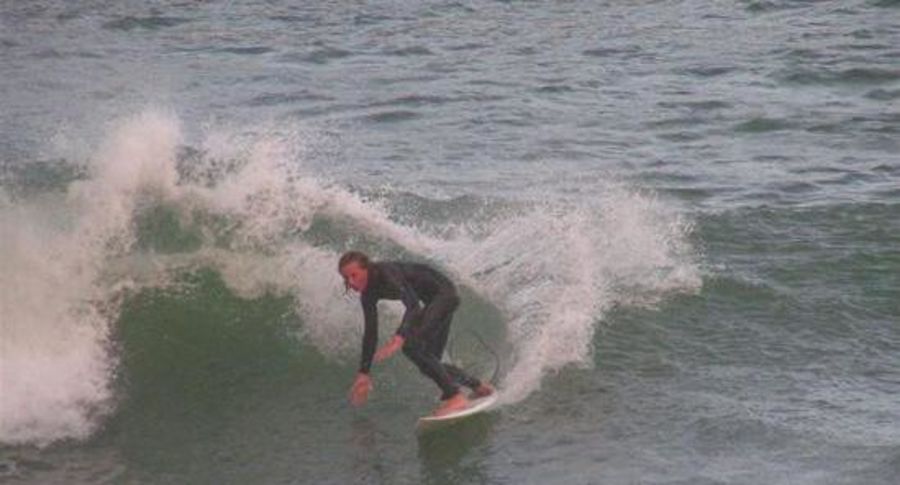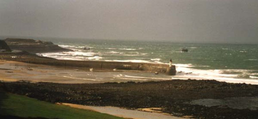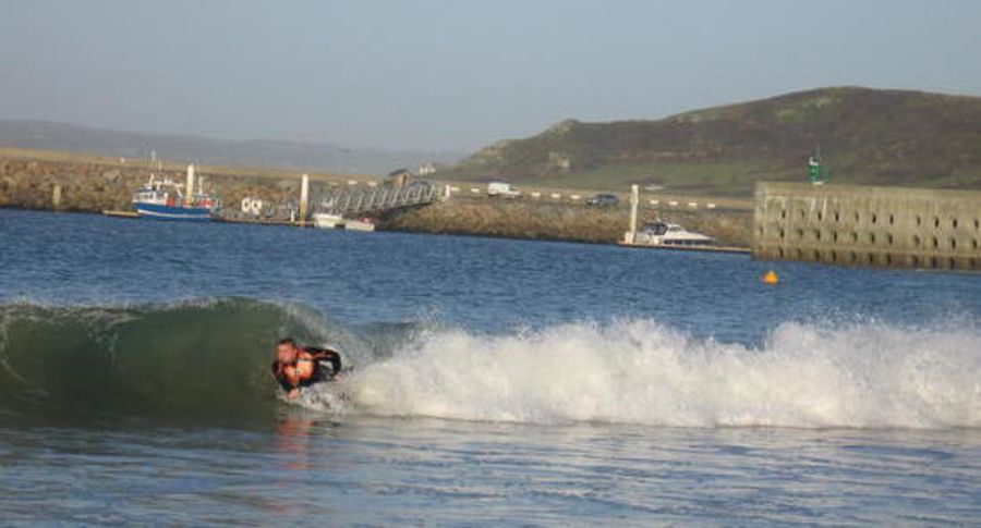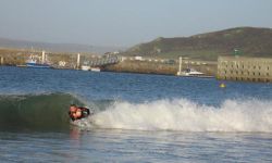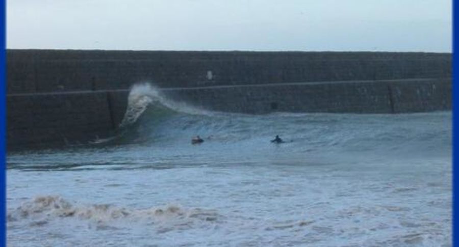 The wave is inside the harbour of Dielette. From Cherbourg take the direction of "Les Pieux".