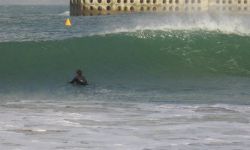 The wave is working by big swell and is fun: wait for the low tide. At this moment, the harbour is quasi empty and you will find the wave. Photos below are old ones: a jetty has been built. The wave is not as good as before but it seems that the wave is coming alive little by little as the sand comes back.