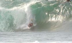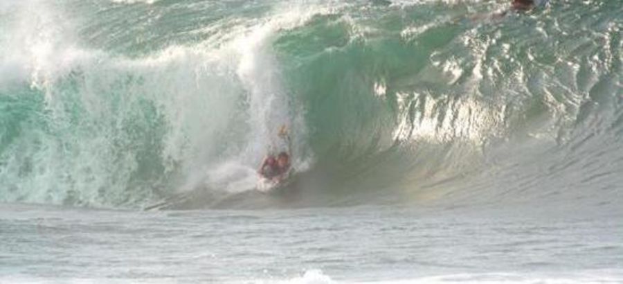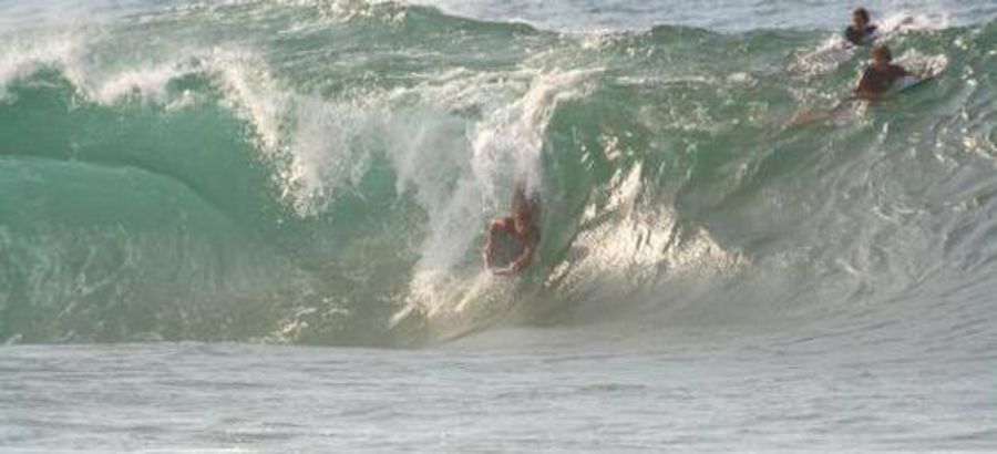 It usually is only rideable at high tide and the best ones are the ones that look like they're gonna close-out(most of the time they don't). If you can make the bottom, the fun has just begun...