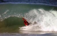 It breaks very rarely, usually in the winter. When the swell is northeast and the wind is west, it is glassy and clean. Park in the shopping center.