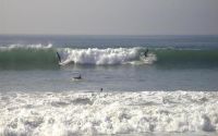 Sand Bar that forms an A-Frame. Next to it is a sand bar that makes wave peak very far outside and keep it peaked until it breaks somewhat inside. Wave will break very far outside if wave is 6ft+. Thank you dredging.