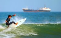 One problem on this beach is pollution, after a few hours dealing with the powerfull sun and the water (usually with an oil skin on it!) your eyes will find hard to keep dealing with, just paddle in and wash your face