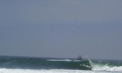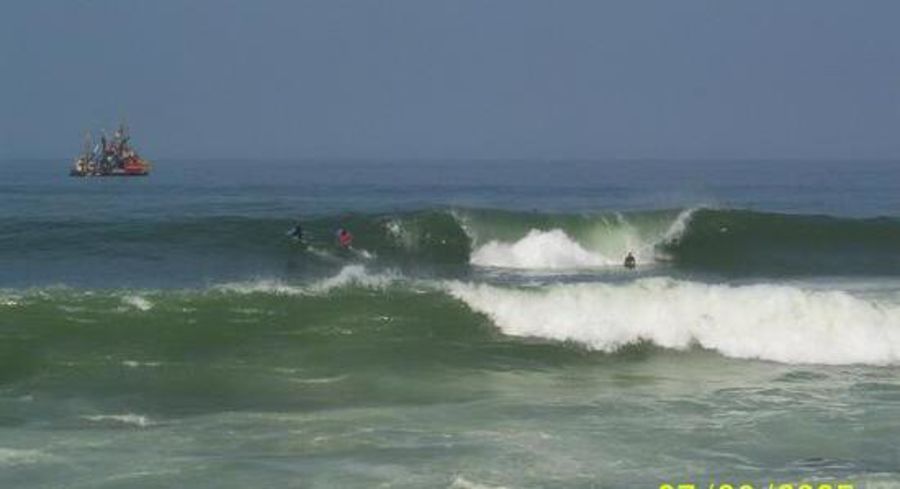 Get a cab from Arica and its 5 minutes south of town in front of the pescado (fish) factory. Get the cab to drop you off at the gates and walk around onto the rocks for 5 minutes and you'll see the wave and a group of boogers sitting on the rocks.