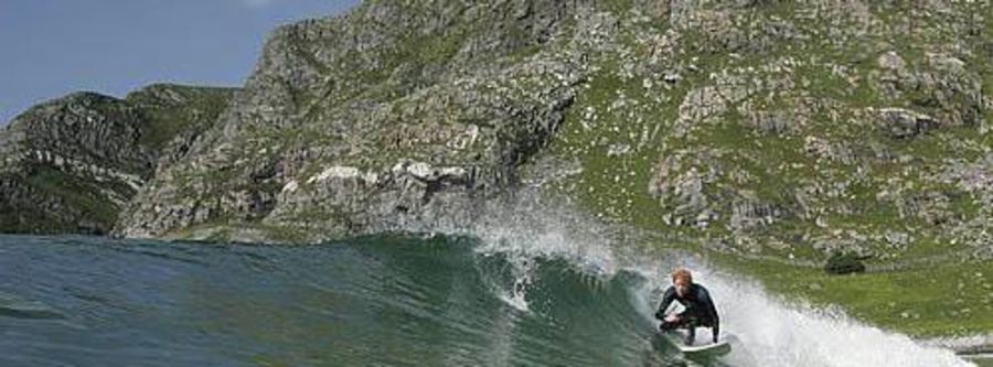 Its great to include a surf at Stadtlandet(what this area is called) with summertime skiing at Stryn. Camp in the tiny town of Ervik. In Ervik there is a nice campsite with toilet and shower, only 3 minutes drive from the surf.