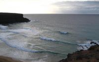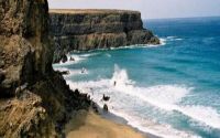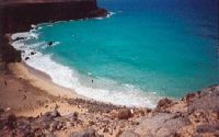 drive all the way along cotillo and try to get on a road close to the cliff....look out for other cars. park there (use the damn handbrake!!!). to get to the beach you need to descend a very steep and low quality concrete staircase, you will be in danger wearing sandals. either you waer shoes or you go barefoot. sit down on the beach and enjoy the atmosphere! do not forget to feed the chipmunks!