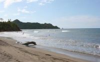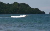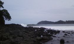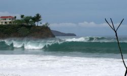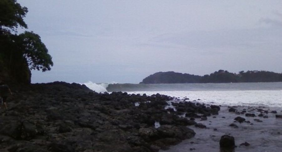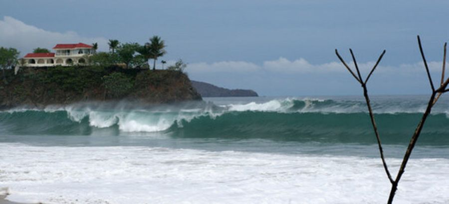 Fly into Liberia, CR. Rent car travel 30min sw towards Huacas and then Playa Flamingo. Take low road towards Flamingo Beach Resort. Once you pass resort connect to paralel beach road and turn left/U-turn around front of resort (the ocean will be on passengers side). 1/4 mile to the cliff house where you can park on this lava laidened point. The story gose that the lady that lives here pushed her drunken hubby off the cliff. So don't take in any after session Martini lunches.