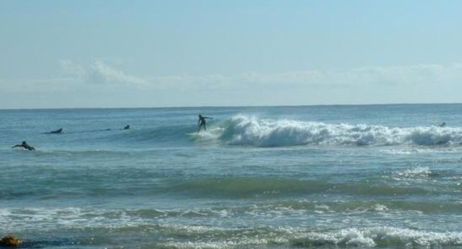 Actually it's a pretty mellow righthander over sand. Can have some very long rides, rarely hollow. Go the ones that look like closeouts.
