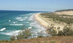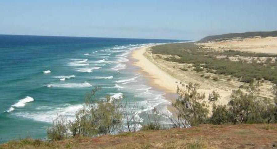 4wd only.no roads, drive on the beach. Heaps of tourists but very few people in the water. Fishermans heaven- catching big fish bitten in half is common. 200 miles of beach. 150 miles north of the Sunny Coast and gets a lot of swell.