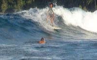 I didn't get to surf this place in the peak season so I honestly don't know how good this place can get. I do know the reef is shallow on a lower tide such that you won't even be able to duck dive the wave. Booties are a must here and it probably wouldn't be a bad idea to have some gloves as you will be ditching your board and grabbing reef on many occasions. The wave looks like it has potential on a good swell and can get very hollow.