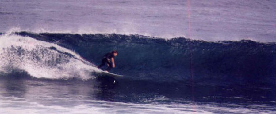 watch out for the shelf...Reforms lefts which peel quickly down a shallow reef.Handles SW wind, but likes high tide. Great little wick wack wave.