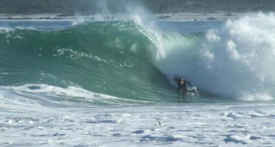 it is on a huge farmers land.watch out for this guy.he will shoot you.we saw a landmine there the other day.very heavy shallow wave.bodyboards paradise'