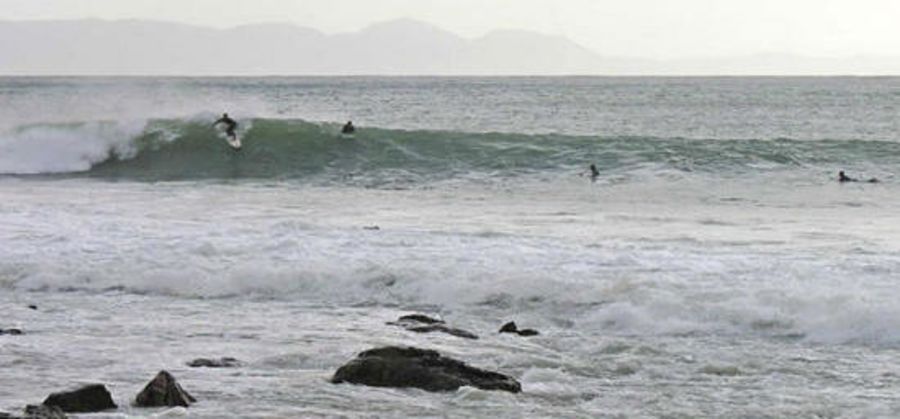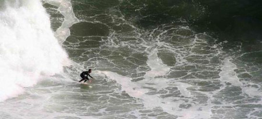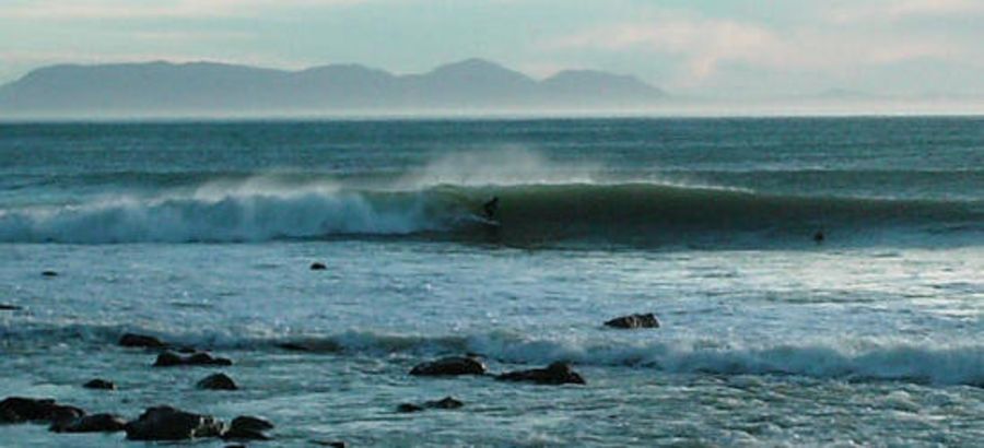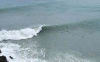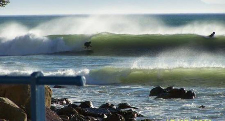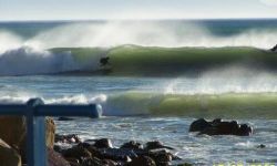 Heavy shore break wedging off the harbour wall for fat tubes and good air-time.