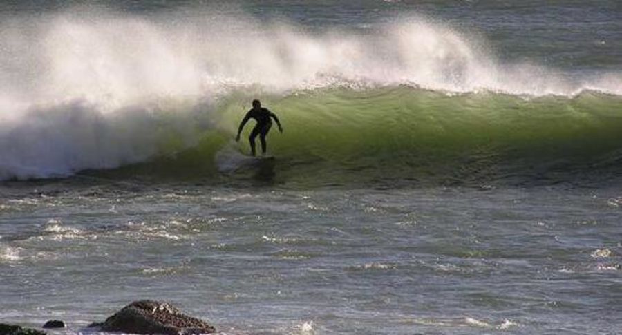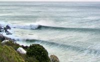 Drive through Gordon's Bay along Beach Road heading for the old harbor. As you pass the harbor entrance keep right and enter Bikini Beach Road. You'll see wave wrapping down the point past the nun's pool.