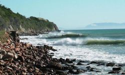 Bikini Beach needs a huge SW swell to start working - plus 4 meters out at Cape Point. For the months heading into summer the winds can change to SE for an epic off-shore days. When everything falls into place this spot can go off. But it's rare. Access to the waves: walk along the rocks at the end of the road and jump over the waves from the nun's pool. Mind the cops - they need to give loads of illegal parking tickets.